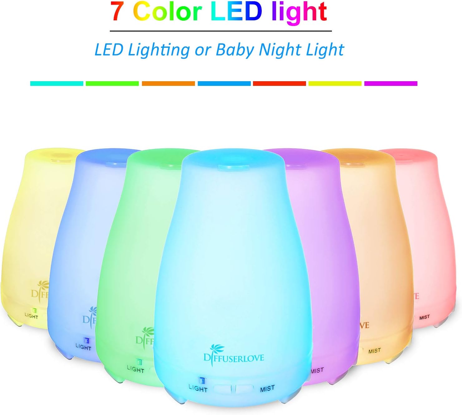 Diffuserlove 2 Pack 200ml Essential Oil Diffuser Ultrasonic Aromatherapy Diffuser Cool Mist Humidifiers with 7 Color LED Lights & Waterless Auto Shut-Off for Home Office Kitchen Bedroom