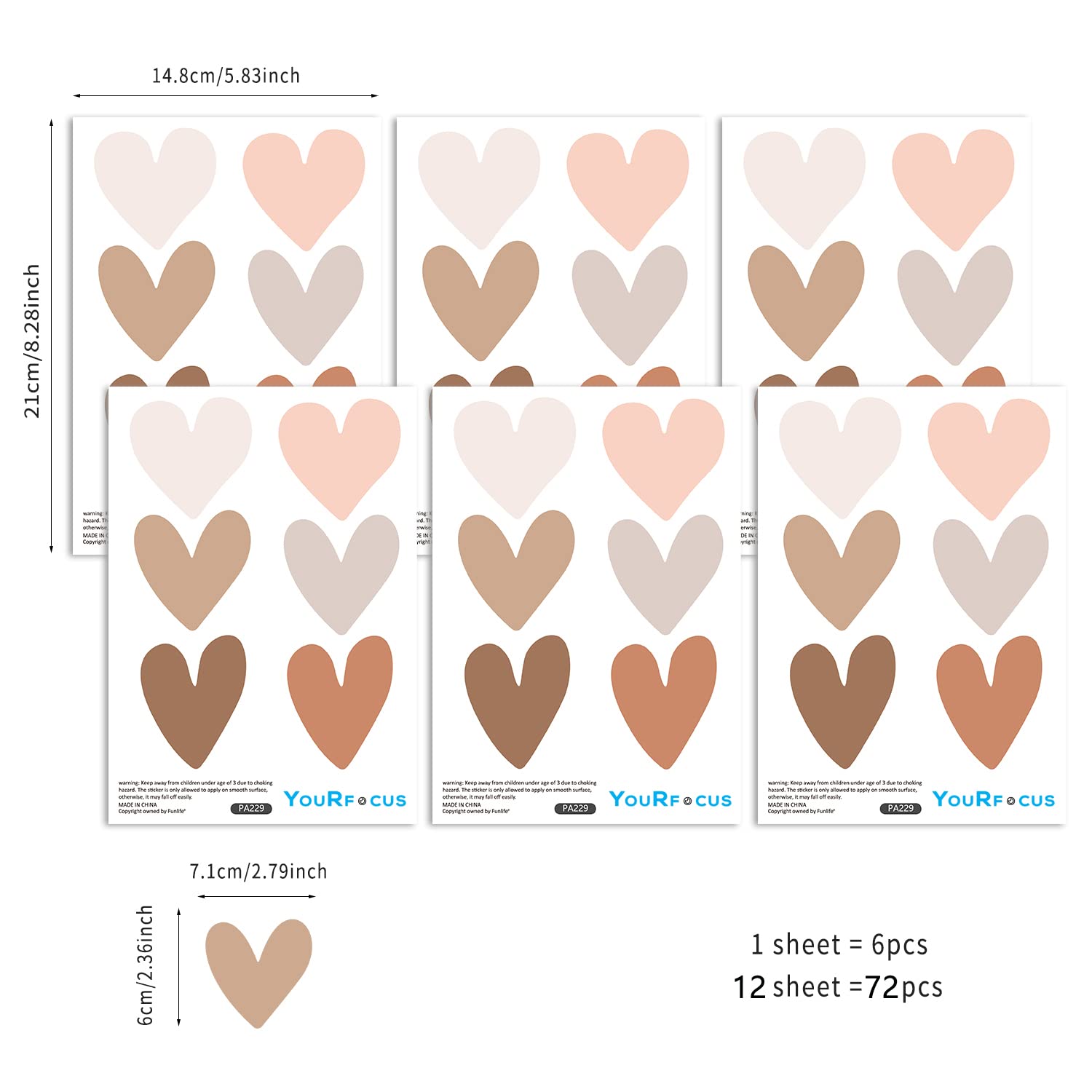 Boho Wall Decal for Girls Bedroom 72 PCS, Boho Heart Wall Stickers Peel and Stick for Nursery Kids Room Décor, Removable Wall Decals Vinyl Murals DIY Cute Decorations (12 Sheets)