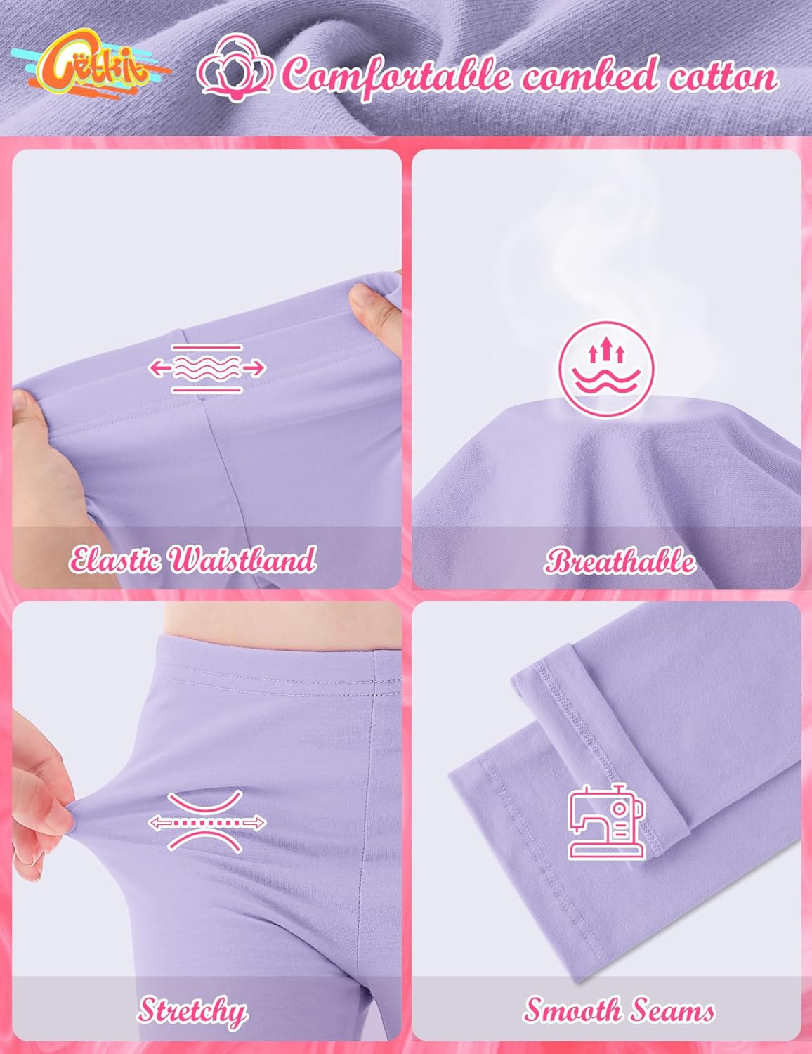 - 【High-Quality Girls Leggings】 These leggings for girls are made of 94% polyester and 6% spandex. The fabric is stretchy, ultra-soft, and breathable, making these leggings for girls 8-10 very comfortable and flexible. All thin leggings are made from premium four-way stretch fabric, with an elastic band sewn into the waistband, which lies flat on the waist for a comfortable and good fit.