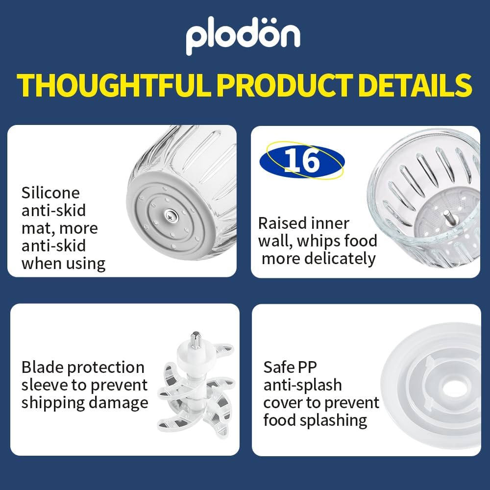 - 【What's in the Box】Baby food processor (Electric Without Battery) with 2 Glass Bowls (0.6L+0.3L)*1, baby food containers*1, silicone spoons*1, small tools*3. With the Plodon Baby Food Maker, you can say goodbye to store-bought baby food, and hello to homemade goodness. Start making healthy and delicious meals for your little one!