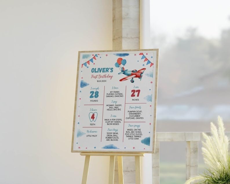 Personalized Airplane Birthday Milestone Poster, Airplane 1St Birthday Milestone Sign, Time Flies Birthday Chalkboard, Design 017