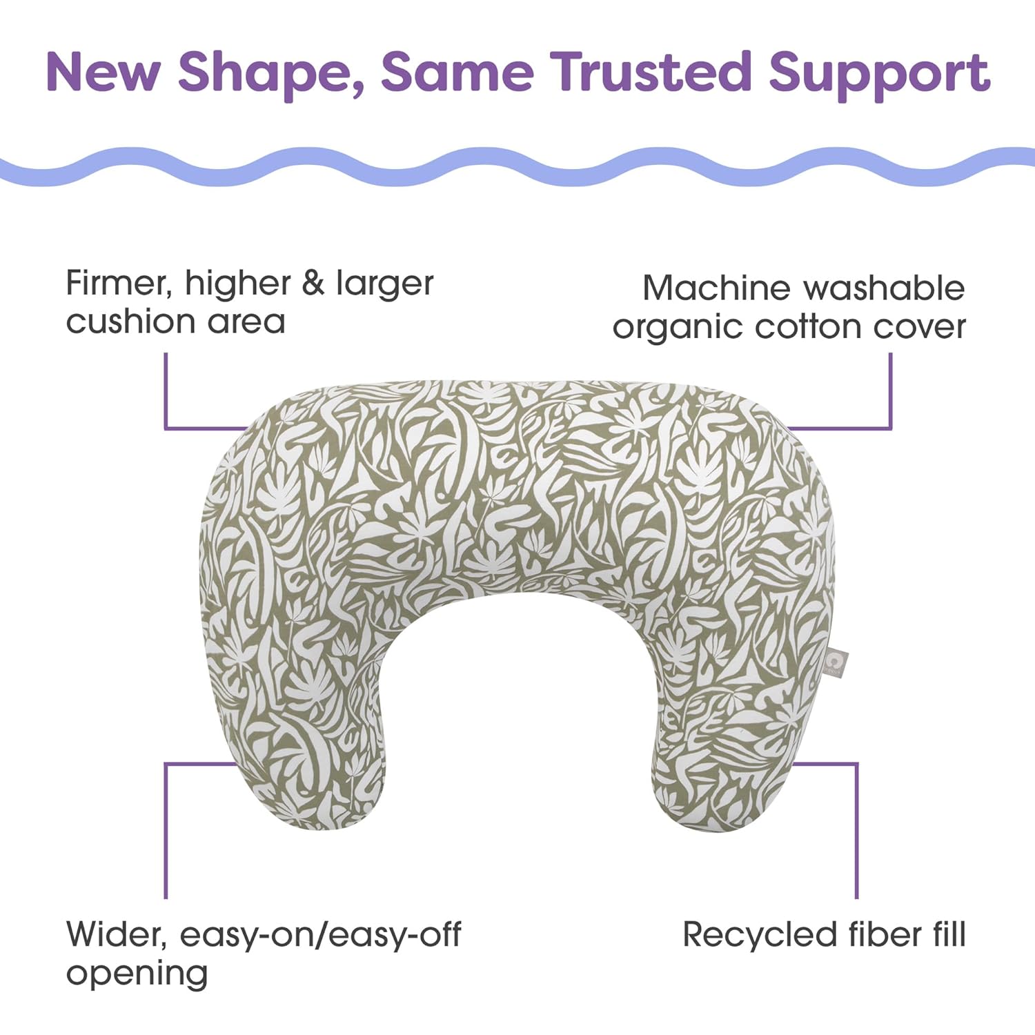 Boppy Nursing Pillow - Ergonomic Bottle & Breastfeeding Pillow, Higher, Firmer & Larger, Water-Repellent with Washable Organic Cotton Cover, Baby Safety Alliance Verified - Green Cut Out Leaves