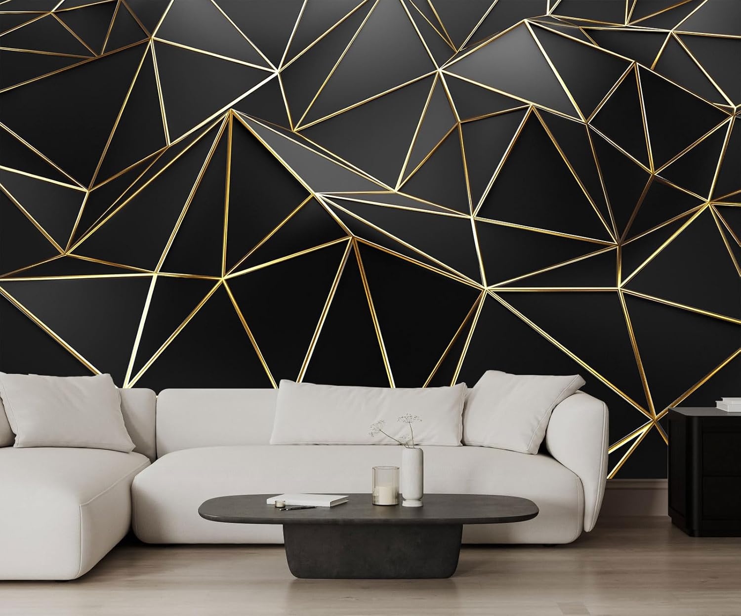 Black Geometric 3D Mural Wallpaper for Bedroom Living Room TV Background Home Decorations(Not Self-Adhesive)