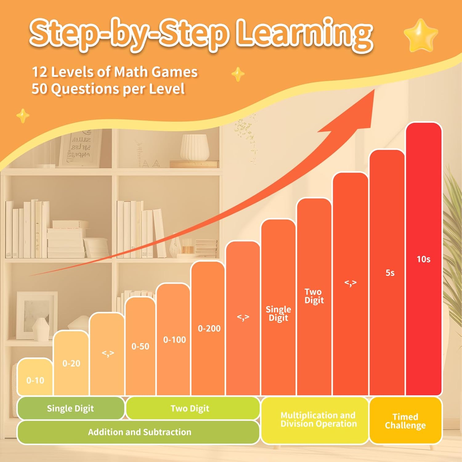 - 【Learn with Rewards & Encouragement】Kids receive instant voice encouragement after answer, helping them understand the questions. To keep them motivated, they earn star rewards for completing tasks, making math practice engaging and rewarding.