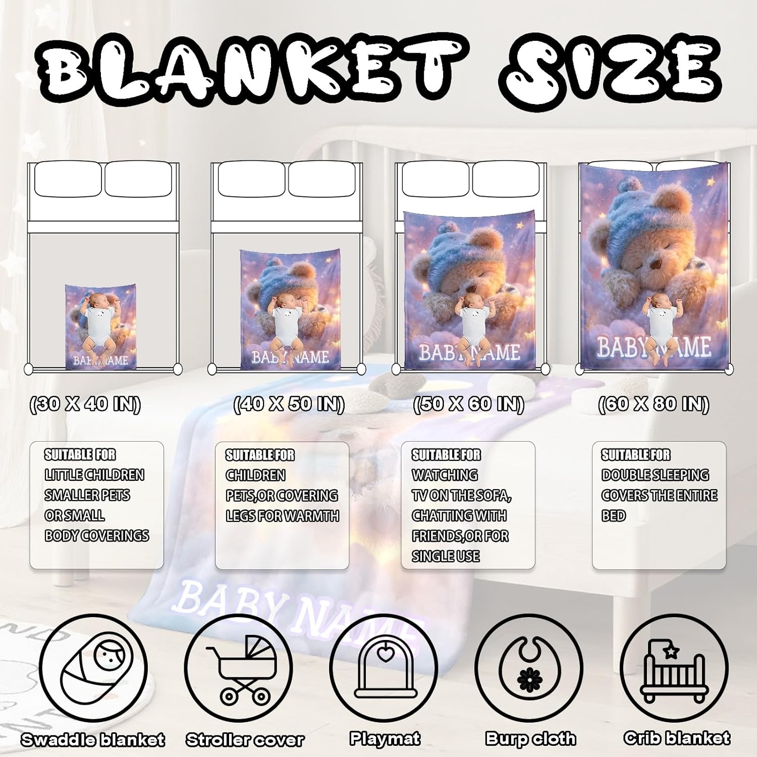 - Super Soft Plush Flannel Fleece for Delicate Skin -- Our custom baby blanket is crafted from premium, ultra‑soft flannel fleece that’s gentle on baby’s sensitive skin. It resists pilling, wrinkles, and retains its plush softness wash after wash. Safe and cozy, this baby blanket for boys and girls provides comfort and warmth, whether used in the crib, stroller, or during playtime.